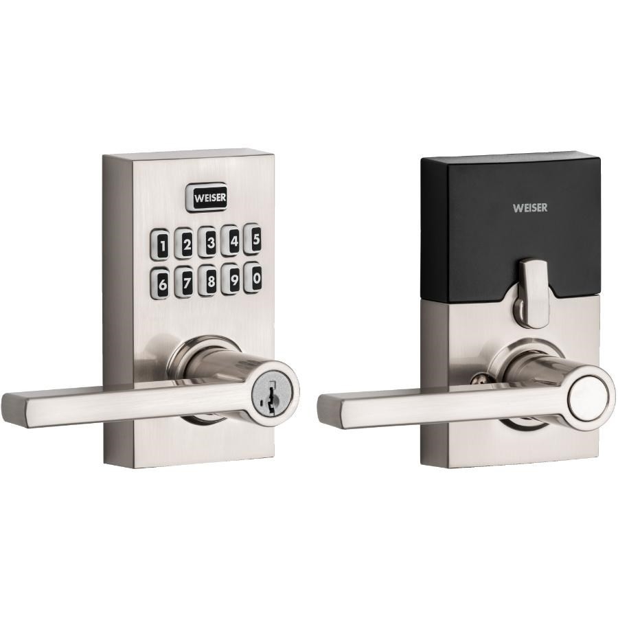 Serrure à pêne dormant électronique avec bec-de-cane, fini nickel satiné avec technologie Smart Code et Smart Key