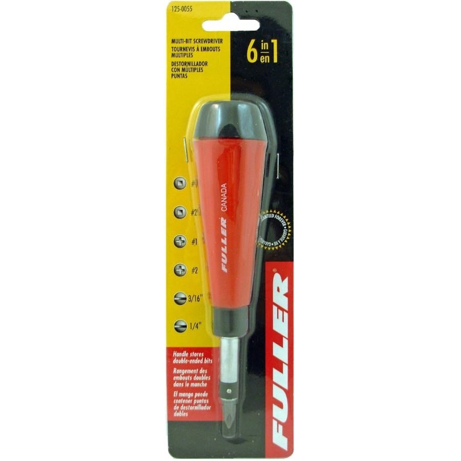 • Manche creux contenant les lames suivantes: Robertson no 1 et 2, cruciforme (Phillips) no 1 et no 2, plate 1/4 po et 3/16 po