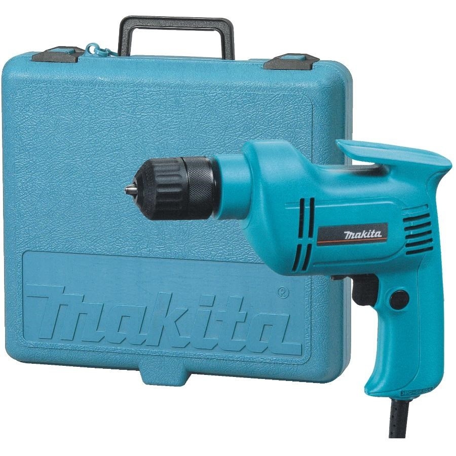 Cette perceuse réversible à vitesse réglable est munie d'un puissant moteur de 4,9 ampères pour accomplir des gros travaux. La mèche s'installe en un clin d'oeil grâce à l'ingénieux mandrin sans clé. La grande gâchette ne fatigue pas le doigt. Silencieuse, elle fonctionne à 79 décibels. Sa poignée inclinée pratique optimise la résistance de la main. Le grand bouton de blocage pour l'utilisation en continu vous permettra d'effectuer les longs travaux. Pour une durée de vie prolongée, Makita a conçu cet outil isolé de 3,1 lb avec une construction à roulements à billes. Elle comprend un mandrin sans clé pour une installation et un retrait faciles de la mèche; un grand bouton facile à actionner; une vitesse réglable (0 à 2 500 tr/min) pour le perçage d'une multitude de matériaux; une poignée alignée pour un contrôle accru; un grand bouton de blocage pour l'utilisation en continu; et un bouton de marche arrière bien positionné.