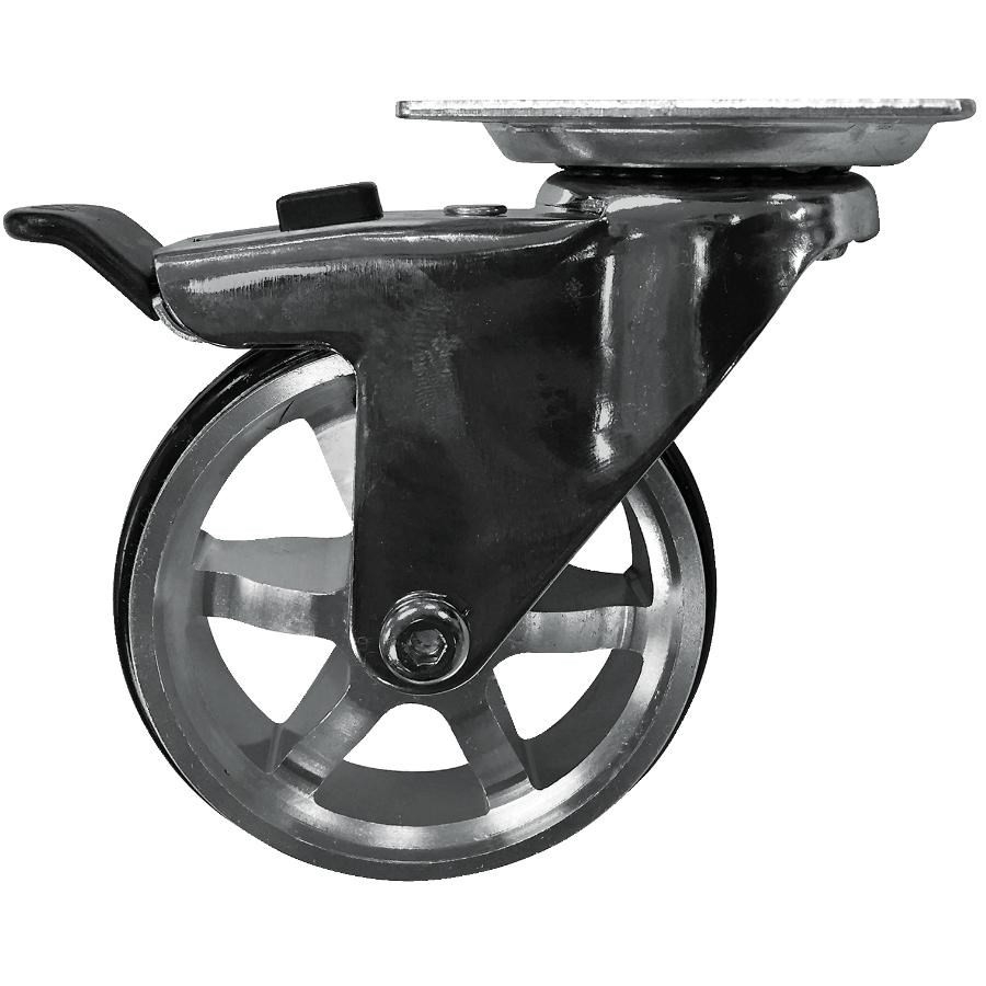 Roulette pivotante de 3 po sur plaque en aluminium chrome luxueux, avec frein