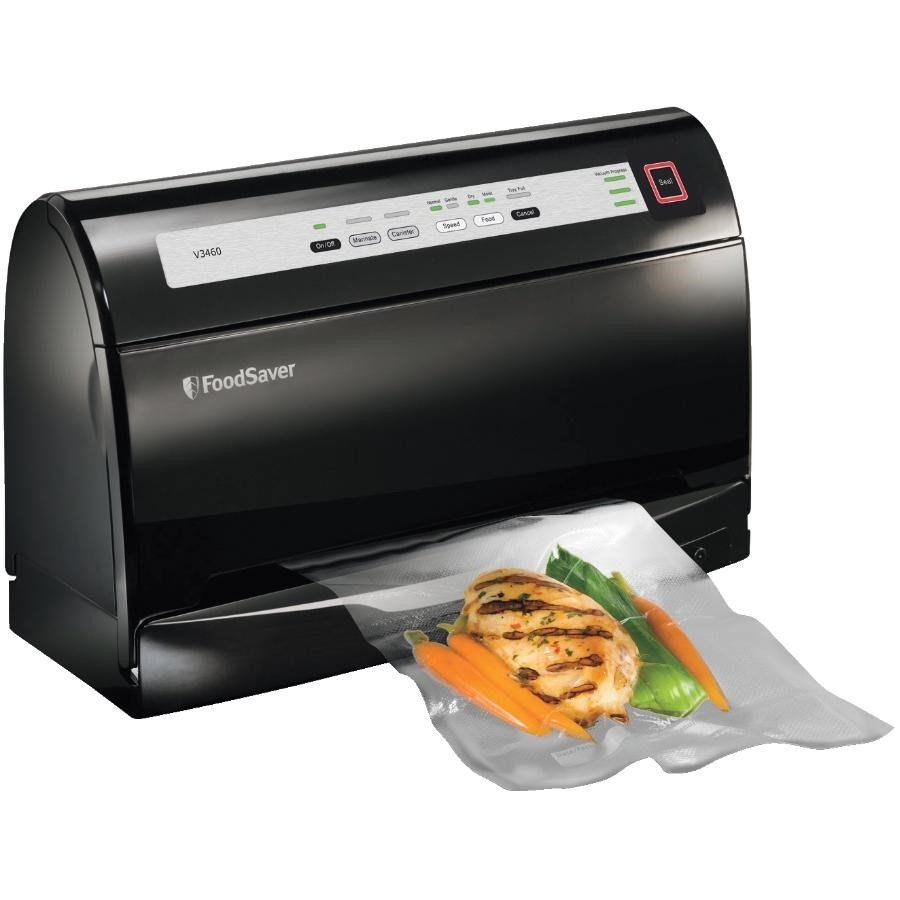 Le système d'emballage sous vide FoodSaver combine un boîtier vertical peu encombrant et un fonctionnement entièrement automatique pour sceller efficacement la fraîcheur d'une foule d'aliments. Grâce à une technologie exclusive qui détecte automatiquement le sac et le type d'aliment, l'appareil crée avec précision un sceau étanche à l'air. Avec sa nouvelle forme verticale, il occupe moins d'espace sur le comptoir. Il comprend aussi 2 vitesses d'aspiration, 2 niveaux de scellage, un support pour rouleaux avec coupe-sac intégré et un ramasse-gouttes breveté amovible facile à nettoyer.