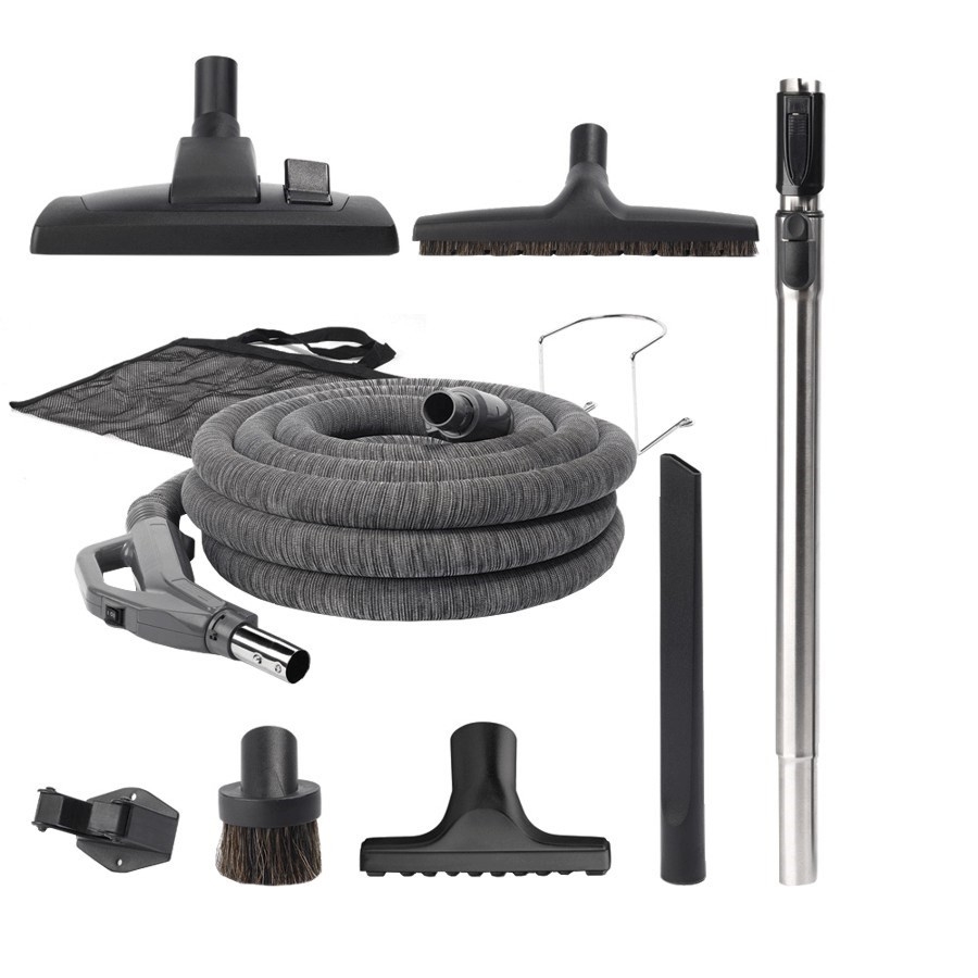 Voici exactement ce qu'il vous faut pour remplacer vos accessoires d'aspirateur usés. En mettant à votre disposition des accessoires pour aspirateurs destinés à pratiquement tout type de revêtement, qu'il s'agisse de plancher à surface dure ou de tapis, Broan vous aide à facilement garder votre maison impeccable. L'ensemble d'accessoires DELUXE BNAK2 comprend : une large brosse multisurface de première qualité idéale pour le nettoyage des tapis et des planchers à surface dure. Cette brosse très durable et facile à manier compte parmi les plus silencieuses sur le marché; un boyau indéformable avec poignée ergonomique rotative sur 360 degrés pour éviter les blessures au poignet et l'entortillement. Le boyau comporte un recouvrement matelassé pour protéger meubles et plinthes des égratignures (tube facilitant l'installation inclus) et une extrémité universelle s'adaptant à la plupart des prises d'aspiration; une brosse à plancher à poils doux de première qualité avec rainures latérales améliorant le nettoyage sur les côtés et une bordure festonnée évitant le bourrage des débris tout en contrôlant le flux d'air pour un ramassage supérieur; un sac de rangement en tissu pour garder les outils organisés et faciles d'accès; un support à manchon pour faciliter le rangement sur le mur ou derrière la porte; un manchon télescopique en acier inoxydable d'une longueur ajustable de 25 à 38 po; un embout long à extrémité biseautée assurant une circulation d'air continue pour un nettoyage optimal dans les zones restreintes ou difficiles d'accès; un embout pour un nettoyage facile des meubles capitonnés; une brosse à poussière à poils doux qui n'endommage pas les surfaces; un support en métal robuste pour un rangement facile et rapide du boyau.