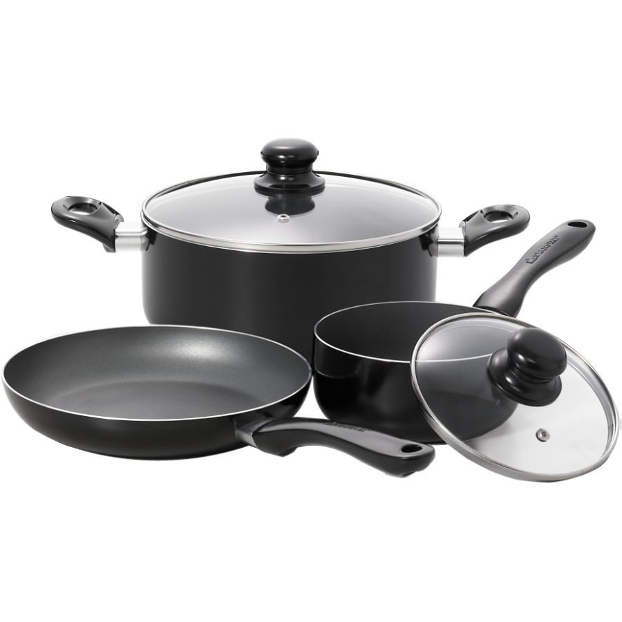 Cet ensemble 5 pièces comprend: Casserole 1.4 L (1.45 qt) avec couvercle, Marmite 4.5 L (4.7 qt) avec couvercle, Poêle 24cm (9.5")Surface antiadhésive pour une cuisson santé et un nettoyage facileVa au lave-vaisselle et au four jusqu'à 350F