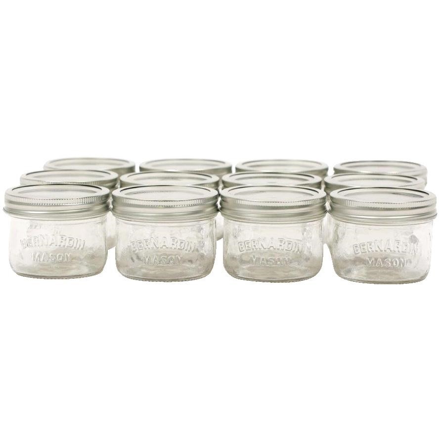 Ces pots Mason de 250 ml de marque Bernardin sont parfaits pour la mise en conserve de saumon, salsa, relish, chutneys, confiture, cornichons et autres recettes. Leurs goulots de grand diamètre vous permettent de remplir et transférer facilement les aliments, et leur faible hauteur les rendent presque impossibles à renverser. Les écritures en relief autour du verre ajoutent une belle touche. Chaque boîte comprend 12 pots, 12 couvercles et 12 étiquettes décoratives.