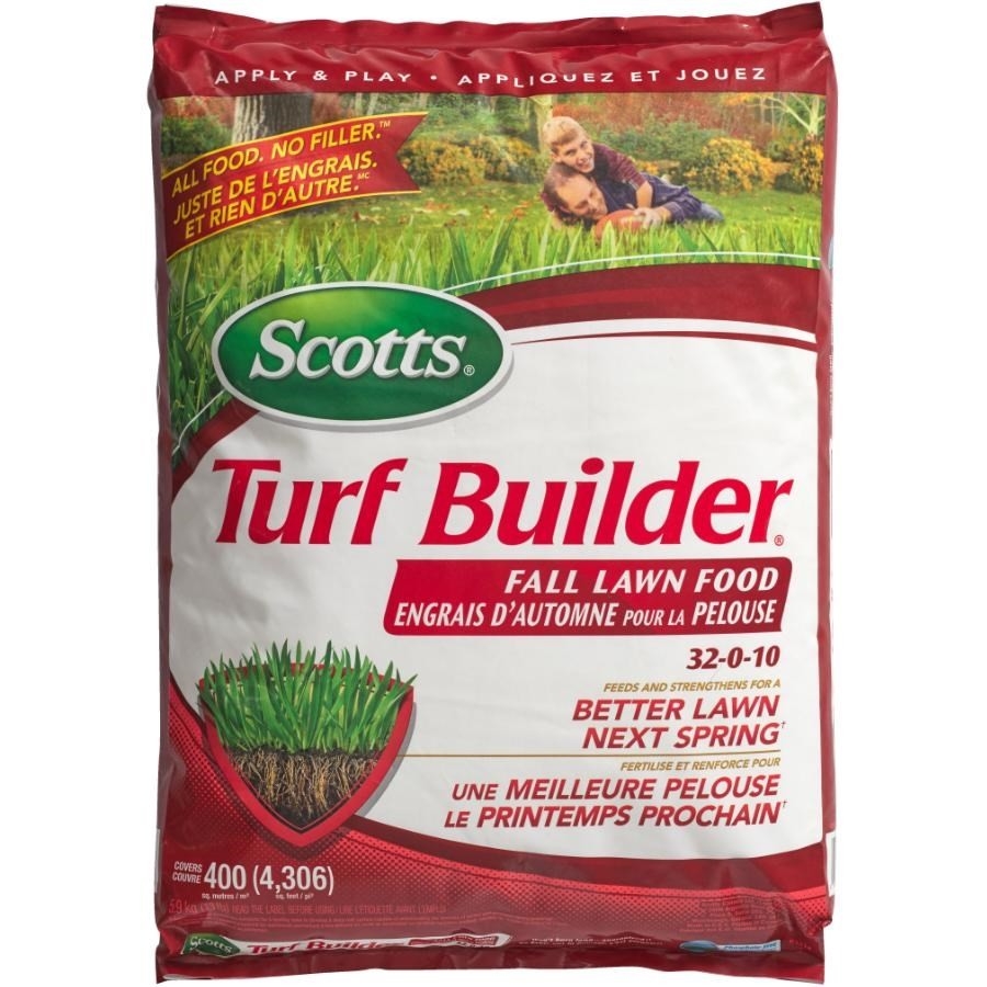 C'est l'automne! Cela signifie qu'il est temps de préparer votre pelouse avec l'Engrais d'automne pour la pelouse Scotts Turf Builder 32-0-10. Juste de l'engrais. Et rien d'autre. Cet engrais sans phosphate fournit les nutriments dont votre pelouse a besoin pour être mieux à même de résister au stress de l'hiver. Le printemps suivant, votre pelouse vous remerciera en verdissant rapidement. Sans compter que vous pouvez appliquer l'Engrais d'automne pour la pelouse Scotts Turf Builder et jouer sans attendre. Vous pouvez donc retourner sur la pelouse immédiatement après avoir appliqué l'engrais. Il n'est pas nécessaire de l'arroser. Ah! Une raison de plus d'aimer l'automne!