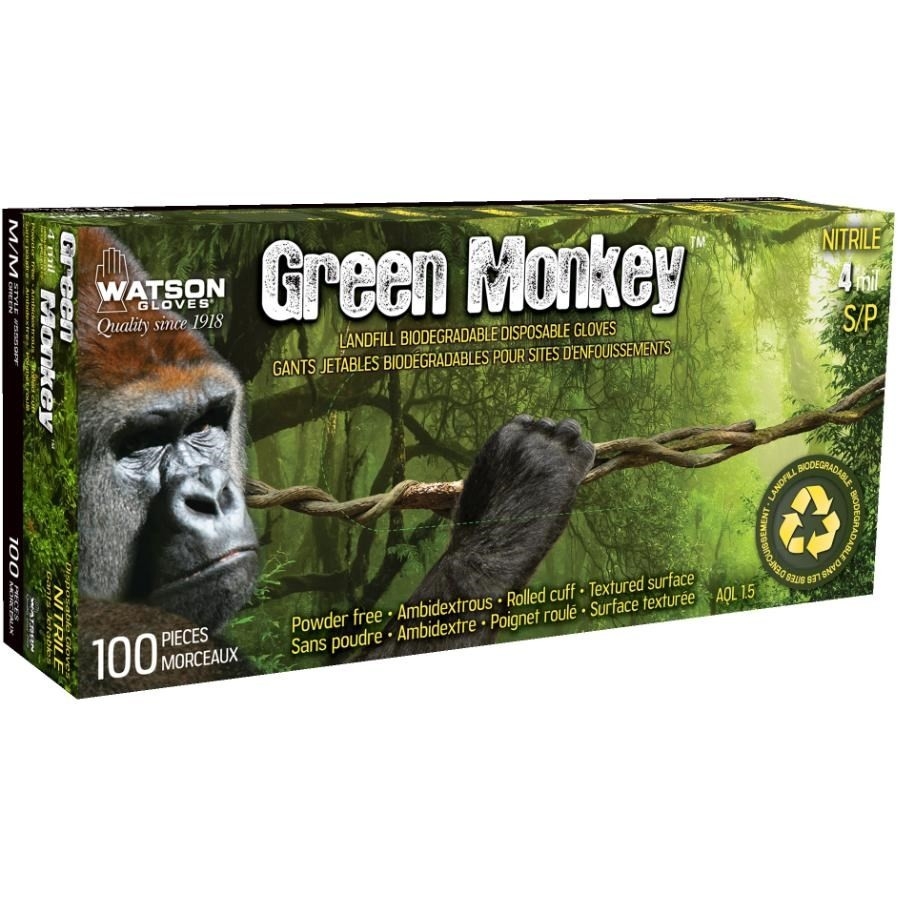 Paquet de 100 gants verts jetables Monkey en nitrile pour hommes, taille moyenne