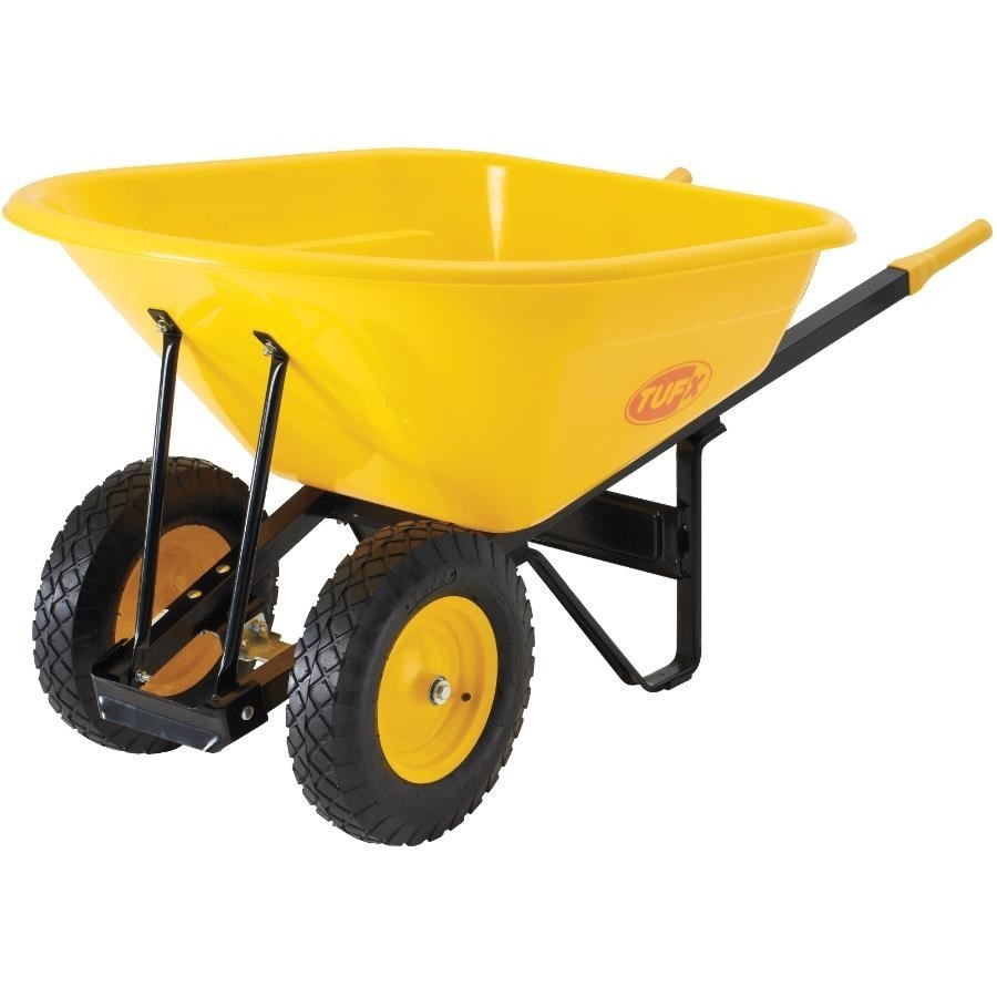 Idéale pour tous vos projets de construction à la maison, cette brouette à deux roues a une forme ergonomique supérieure qui se manipule facilement et qui permet de contrôler des charges lourdes.