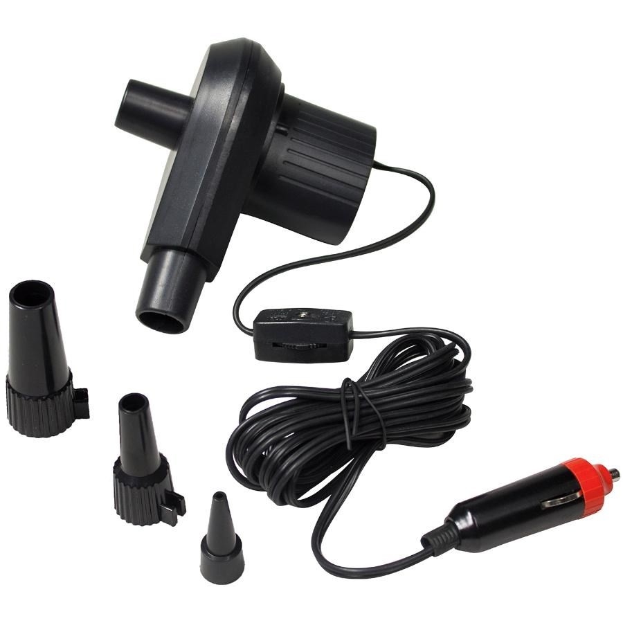 La Pompe à air électriqueadaptateur de 12 volt pour automobileadapteurs interchangeables pour différetns grandeur de matelasl'interrupteur (on-off)Idéal pour les tubes de sport, matelas pneumatique et les petits articles gonflables
