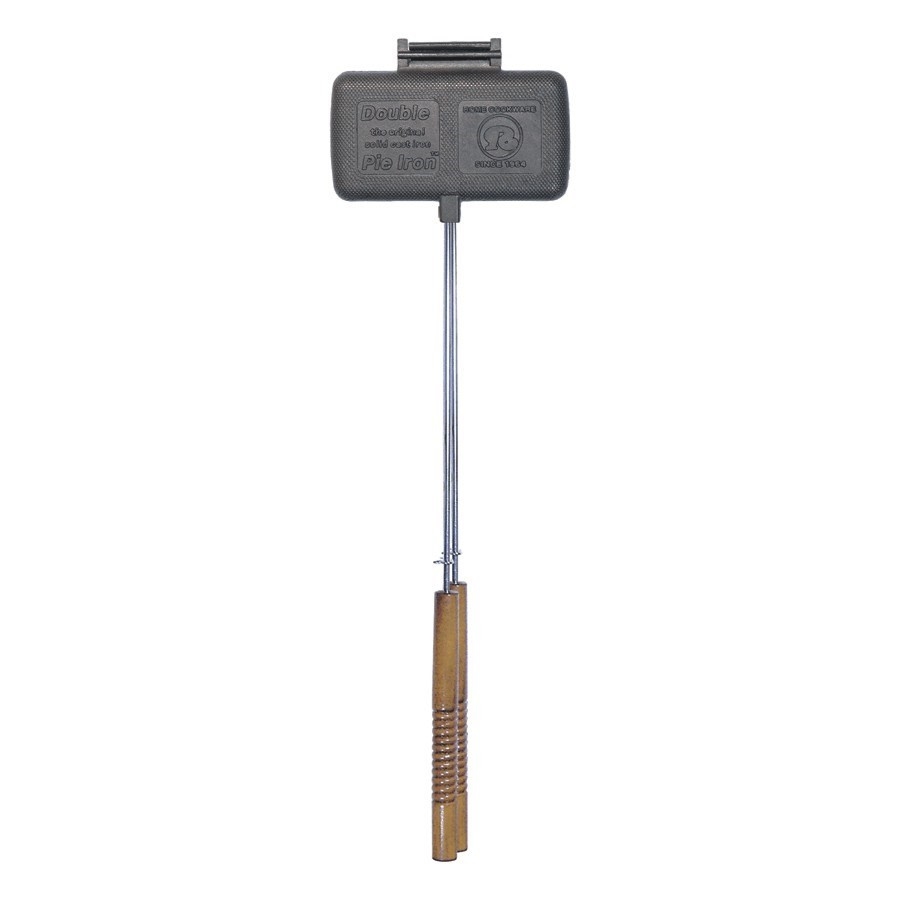 Cuiseur carré double pour tartePermet de cuisiner de façon plus polyvalenteFaites griller deux sandwichs en même temps sans problèmeIl est aussi parfait pour les calzones, le poisson, les pâtisseries, les côtelettes et même le painIl est en fonte, alors vous pouvez le placer sur le charbon comme un faitoutChaque côté du cuiseur sert aussi comme petite poêleTête de 8 1/2 po x 4 1/4 poLongueur totale de 28 po