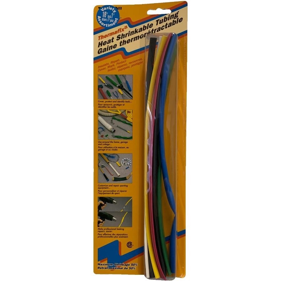 Manchons thermorétractables ThermafixTrès souples ; bonne résistance aux huiles et aux liquidesFortement ignifugésDe 1/8 à 1 po de diam. x 12 po de long.Assortiment de couleurs, 7 manchons