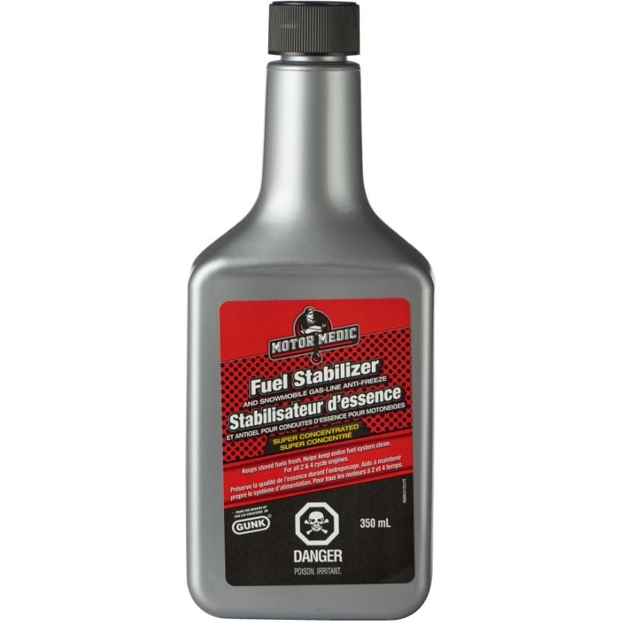 Stabilisateur de Carburant et Anti-Gel de Carburant pour les MotoneigesGarde l'essence fraîche pour faciliter le démarrage la saison suivanteÀ utiliser dans le réservoir durant l'entreposageIdéal pour tous les moteurs à 2 et 4 temps - les tondeuses, les bateaux, les tracteurs de jardin, les motoneiges, les tronçonneuses, les voitures, les camions, etc.Vérifier le guide d'entretien pour connaître la concentration préconiséeMODE D'EMPLOI:Utiliser 5 mL (un bouchon) par litre d'essenceUne bouteille traite jusqu'à 70 litres d'essenceOn recommande que le réservoir doit être plein pour éviter la condensation et la formation d'humiditéLaisser tourner le moteur pendant trois minutes pour s'assurer que le stabilsateur circule dans les conduits, le carburateur ou les injecteursContient de l'isopropanol