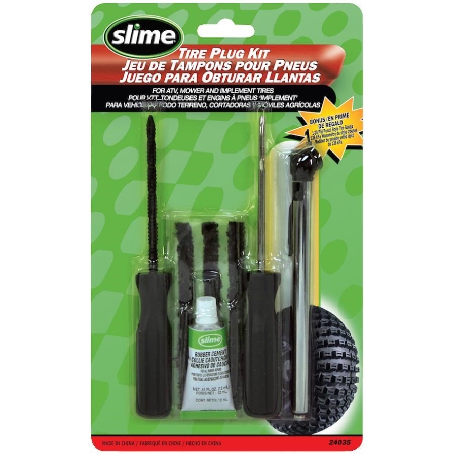 Pour réparer les perforations de tous les pneus sans chambre à airCOMPREND:Alésoir à tournerObturateur à tourner3 tiges d'obturationTube de colle caoutchouc de 12 mlManomètre-crayon