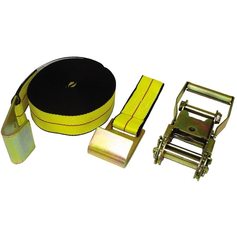 Cette sangle à cliquet de 2 po x 30 pi avec crochet comporte une large poignée en polyester résistant. Idéale pour les camions à plateforme et les remorques routières à plat-pont, elle comporte un crochet plat à chaque extrémité et possède une charge maximale de 10 000 lb (4 500 kg). Comprend un cliquet à boucle; des crochets en chromate jaune traités thermiquement; du polyester jaune; et une charge utile sécuritaire de 3 300 lb.