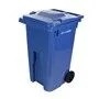 La seule poubelle sur roues fabriquée au Canada. De couleur bleue, cette poubelle a été conçue pour résister aux conditions climatiques de l'Amérique du Nord. Le moulage par injection lui confère robustesse et durabilité. Elle possède des roues de 8 po en caoutchouc et elle a été enduite d'un agent stabilisé anti-UV pour contrer les effets du soleil à long terme. Les roues sont dotées d'un essieu solide en acier zingué jaune à l'épreuve de la corrosion. Le bac a été fabriqué d'une seule pièce, à partir d'un matériau entièrement recyclable, sans boulon ni trou pouvant causer des fuites. La conception élaborée des charnières, auxquelles est fixé le couvercle, offre une fermeture étanche qui empêche les animaux nuisibles et les intempéries d'y entrer et les déchets d'en sortir. Elle a été conçue pour assurer une stabilité maximale au vent, elle est conforme aux normes de l'ANSI en matière de sécurité et de capacité de ramassage. Sa capacité de chargement est de 224 lb et elle mesure 27-1/2 x 24-1/2 x 43-1/4 po (P x la x H).