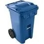 La seule poubelle sur roues fabriquée au Canada. De couleur bleue, cette poubelle a été conçue pour résister aux conditions climatiques de l'Amérique du Nord. Le moulage par injection lui confère robustesse et durabilité. Elle possède des roues de 10 po en caoutchouc et une barre à poignée en métal. Elle a été enduite d'un agent stabilisé anti-UV pour contrer les effets du soleil à long terme. Les roues sont dotées d'un essieu solide en acier zingué jaune à l'épreuve de la corrosion. Le bac a été fabriqué d'une seule pièce, à partir d'un matériau entièrement recyclable, sans boulon ni trou pouvant causer des fuites. La conception élaborée des charnières, auxquelles est fixé le couvercle, offre une fermeture étanche qui empêche les animaux nuisibles et les intempéries d'y entrer et les déchets d'en sortir. Elle a été conçue pour assurer une stabilité maximale au vent, elle est conforme aux normes de l'ANSI en matière de sécurité et de capacité de ramassage. Sa capacité de chargement est de 224 lb et elle mesure 27-1/2 x 24-1/2 x 43-1/4 po (P x la x H).